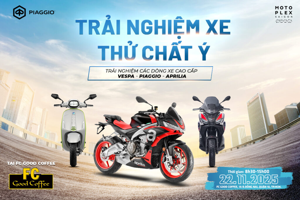Vào ngày 22.11.2025 – Ngày Thứ 7, Vespa Sapa sẽ tổ chức trải nghiệm lái thử các dòng xe Vespa và Piaggio: Aprilia Tuono 660, Aprilia SRGT200, Sprint Tech 150, Vespa Sprint 125, Liberty 125, Piaggio Medley 150 tại FC GOOD COFFEE – Địa điểm Coffee lý tưởng khu vực Quận 10: