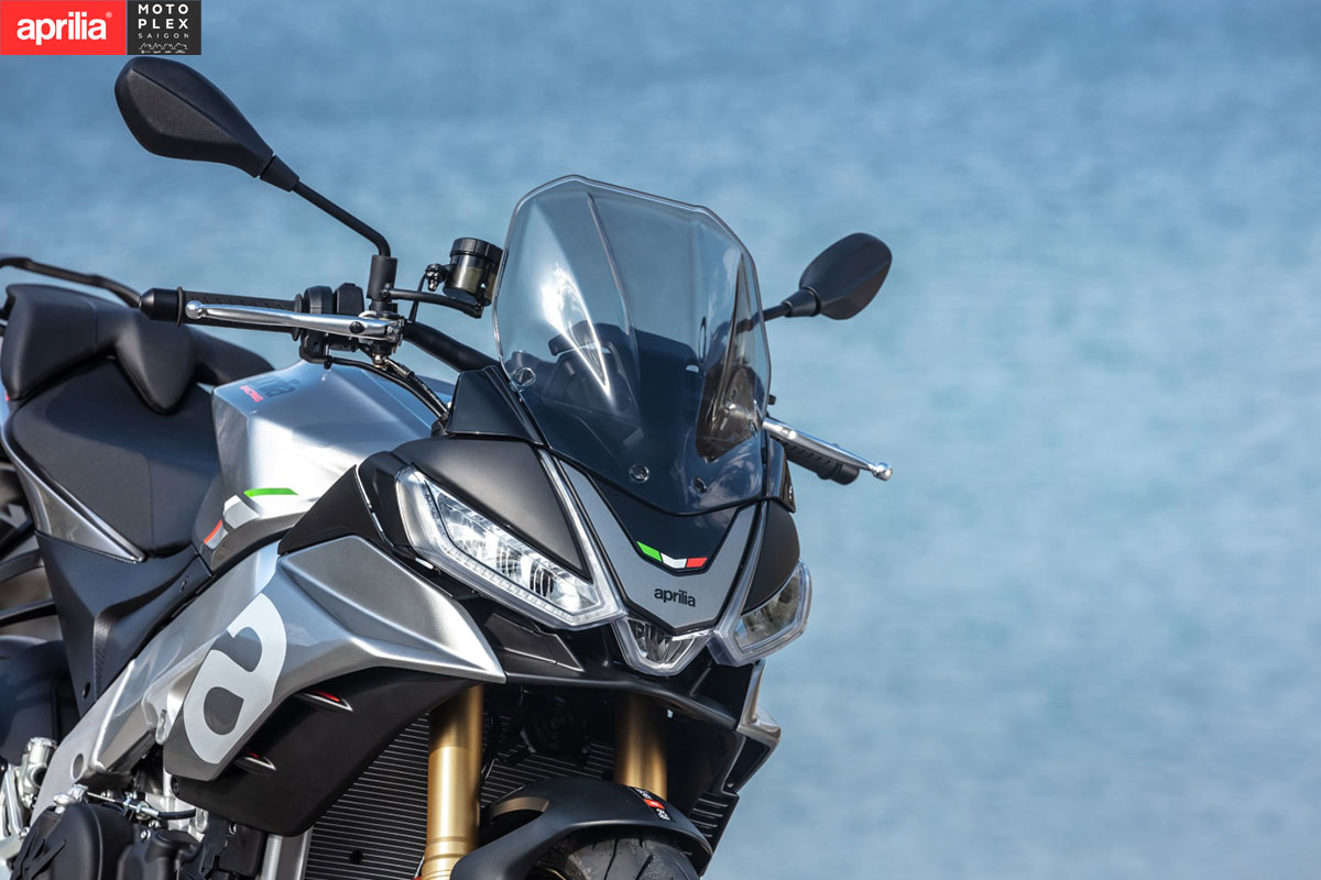 - Kính chắn gió cao hơn: Phiên bản Tuono V4 tiêu chuẩn được trang bị kính chắn gió cao hơn bản Factory, tối ưu hóa việc bảo vệ người lái khỏi sức gió trên cao tốc.